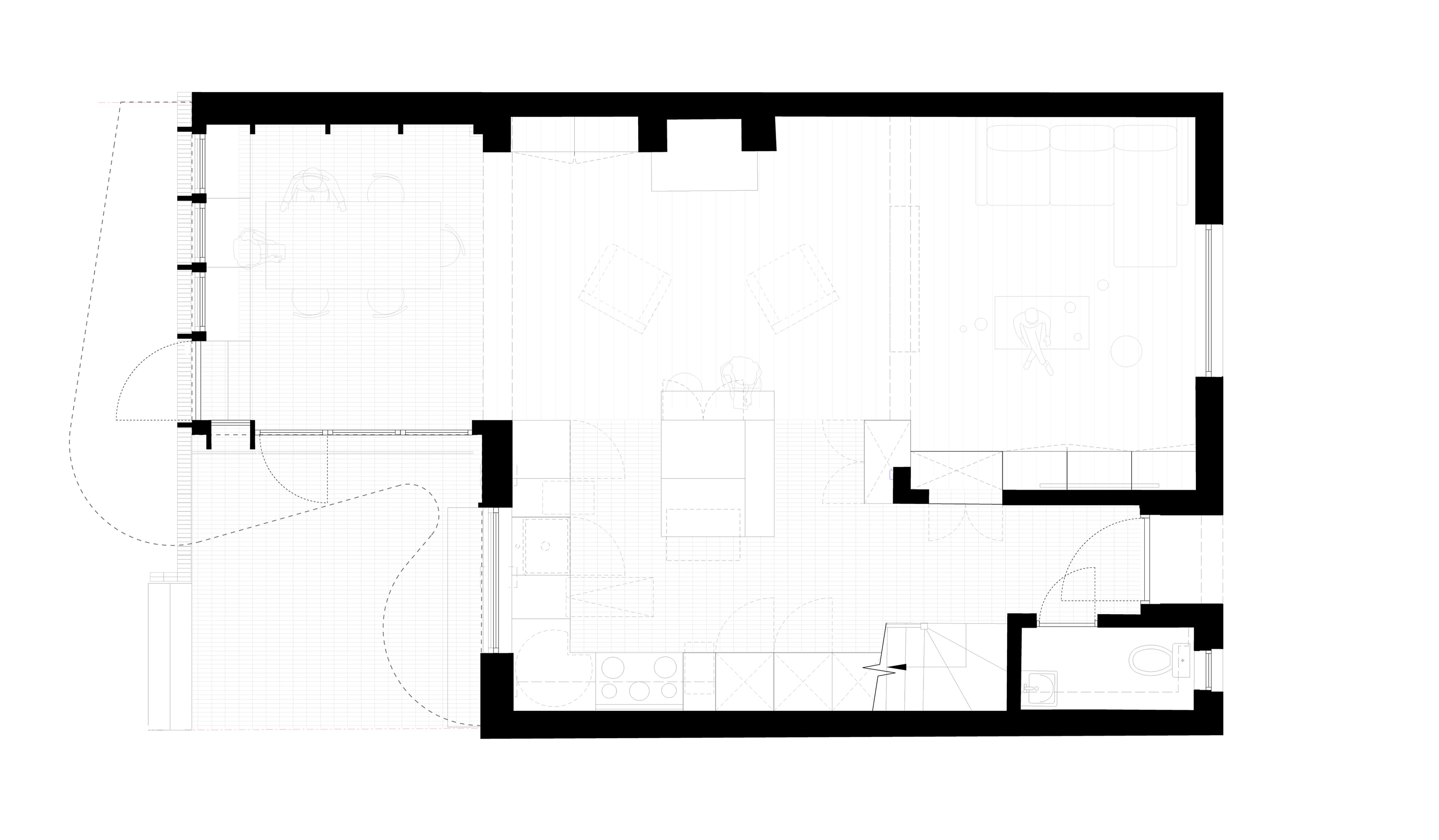 The studio approached the extension as an opportunity to create a bespoke piece of joinery, resulting in a highly crafted take on what could have been routine construction. The existing house was extended to create a new dining space, nestled seamlessly into the banked earth of the garden.